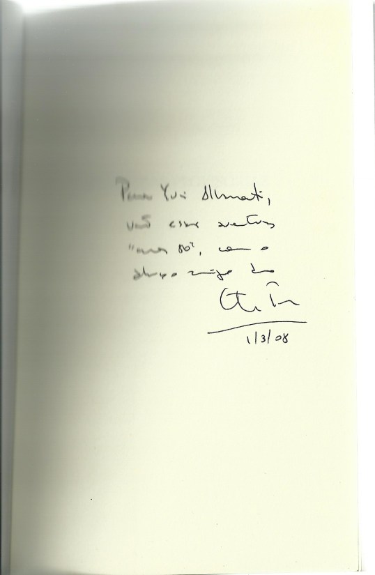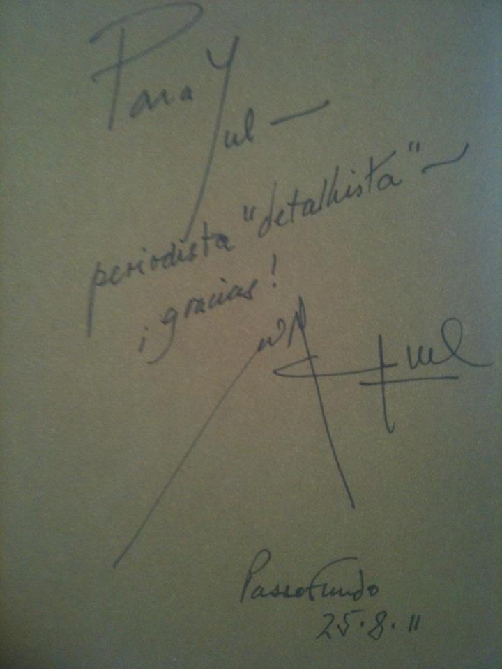 O último autógrafo que peguei foi esse do Mia Couto, quando entrevistei ele no começo desse mês. Foi legal.